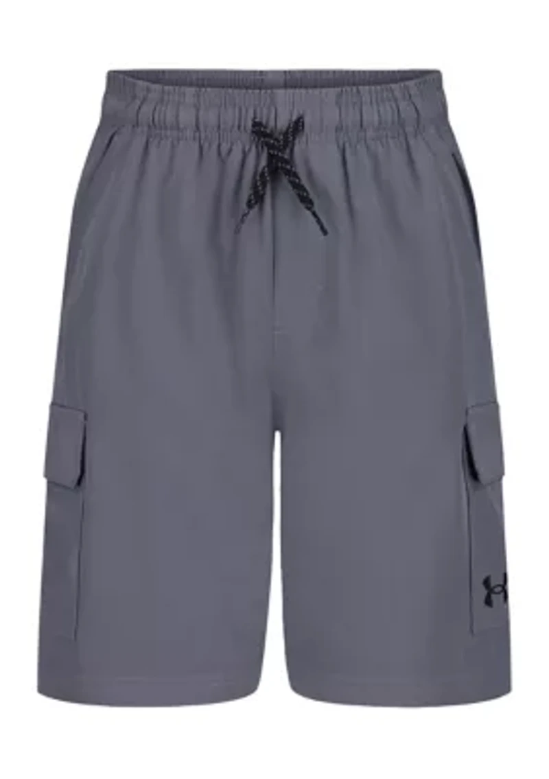 These Under Armour® active shorts are designed for kids who live life on the go. Super-smooth feel, durable wear 4-way stretch for outdoor active comfort Encased elastic waistband with drawcord close 2 front slash pockets with additional cargo pockets for added storage Material wicks sweat & dries really fast Inseam: YMD 7" Imported Material & Care 100% polyester Machine washable