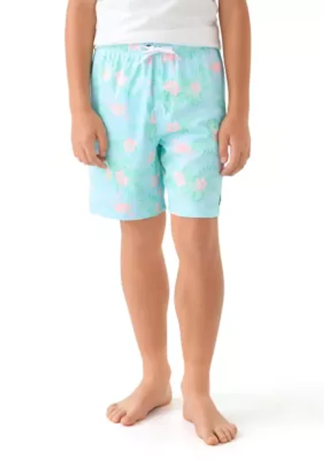Boys 8-20 Seersucker Palm Print Swim Trunks