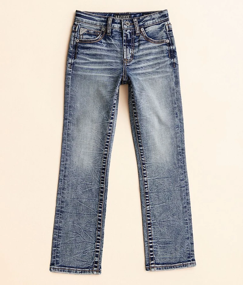 Regular fit jean Superior stretch fabric, our highest level of stretch for ultimate movement Regular inseam measures 27" on size 12 and will grade accordingly to size Tall inseam measures 29" on size 12 and will grade accordingly to size Straight from knee to hem Adjustable waistband Mid-rise, 14" bottom opening Embroidery on pieced faux flap back pockets Hand sanding, whiskering, grinding, and veining details Zip fly Sizes 4-6 have a snap closure