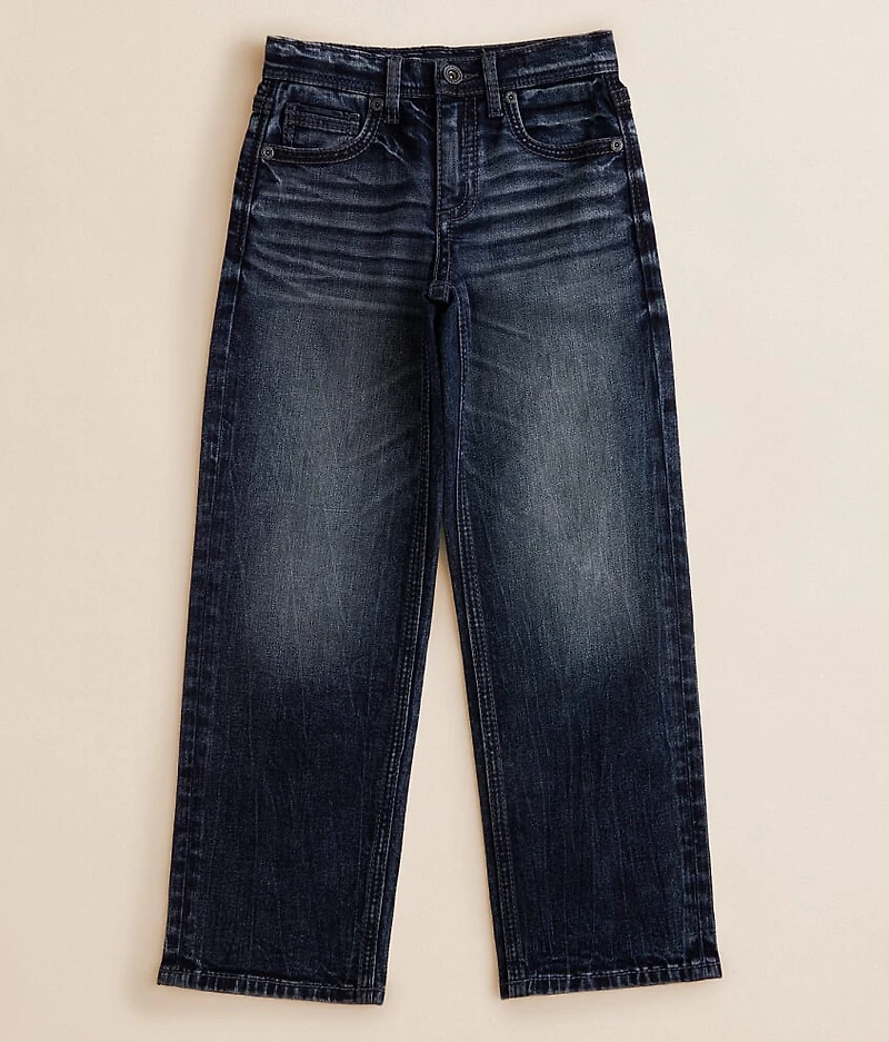 Baggy fit jean Performance stretch fabric for a higher level of flexibility Regular inseam measures 27" on size 12 and will grade accordingly to size Adjustable waistband Regular rise, 16" bottom opening Zip fly Sizes 4-8 have a snap closure Matching men's jean