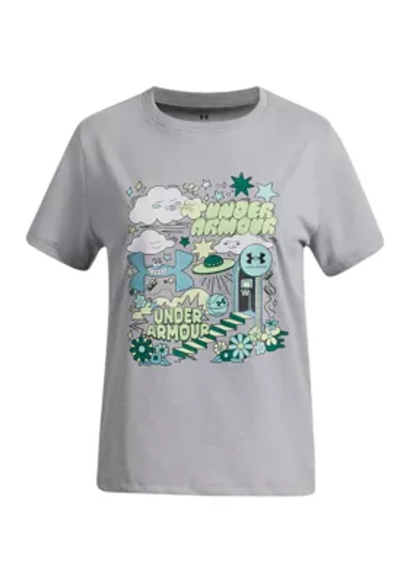 Everyone makes graphics...but Under Armour® makes them better. The fabric they use is light, soft and quick-drying. This shirt features playful graphics to show off your personality. Super-soft, cotton-blend fabric provides all-day comfort. Pullover Crew neck Short sleeves Ribbed collar Imported Material & Care 60% cotton, 40% polyester Machine washable
