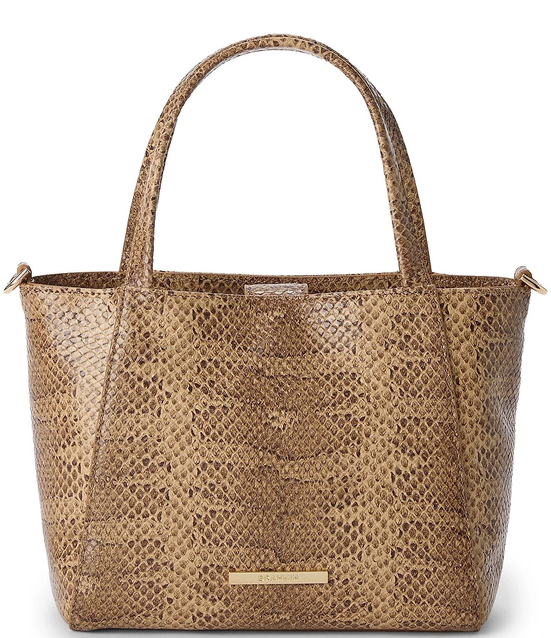 BRAHMIN Light Pecan Bonaire Collection Small Mona Snake Print Tote Bag
