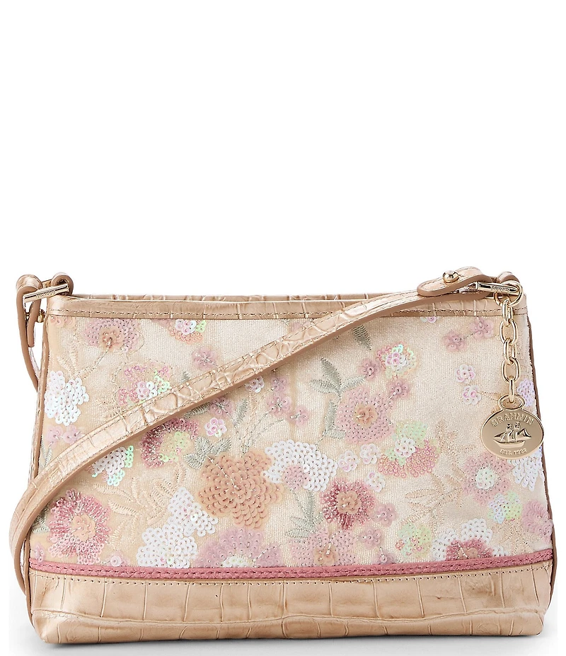 From BRAHMIN, this shoulder bag features: Lorelei is a lightweight multi-tasking shoulder bag that seamlessly transitions from day to night. A removable shoulder strap allows you to carry on the shoulder or as a chic clutch. The zip closure keeps your essentials secure and interior pockets provide effortless organization. Contour and blush sequin velvet, contour flat croc leather, French rose snake leather Zip closure Removable shoulder strap Interior pockets Approx. 10.5" strap drop Approx. 9" L x 6" H x 2.25" W Approx. 0.88 lbs Imported.