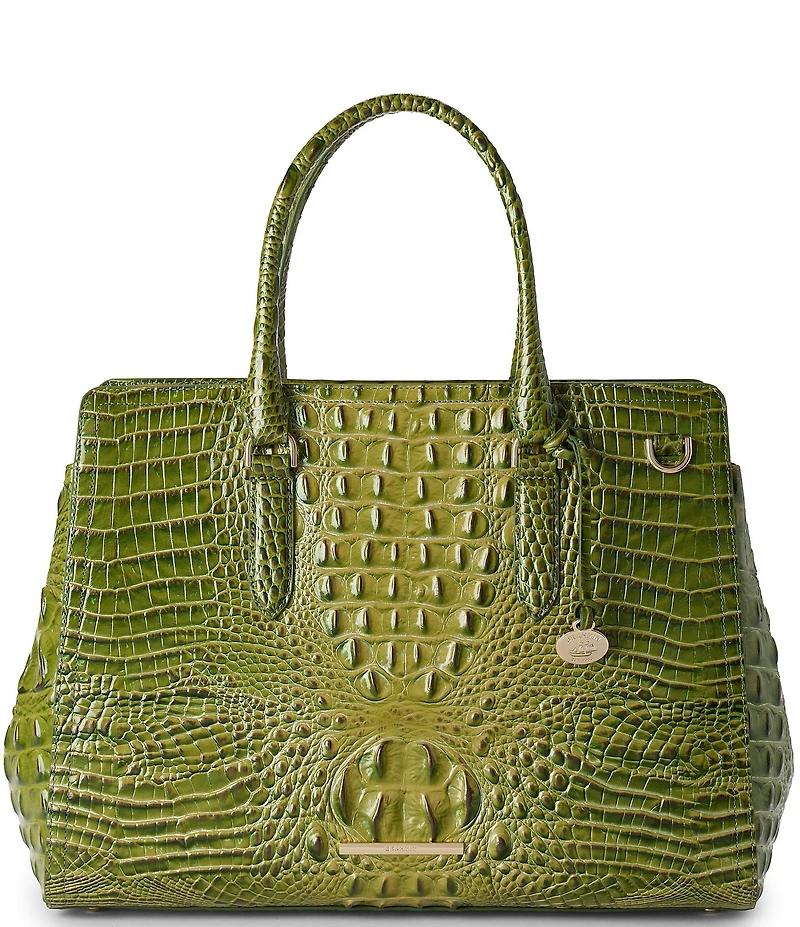 From BRAHMIN, this satchel features: This sophisticated satchel is equally spacious and chic. With plenty of interior organization and a detachable crossbody strap, this carryall will take to you to the office each day and nearly anywhere beyond. Olive Melbourne leather Zip closure Center zip pocket divider Back slide in pocket Interior zip pocket Two organizer pockets One additional pocket Pen pocket Jewelry pocket Dust bag included Key clip Attachable crossbody strap Approx. 6" handle drop Approx. 18" crossbody strap drop Approx. 17" L x 12" H x 6" W Approx. 3.46 lbs Imported.