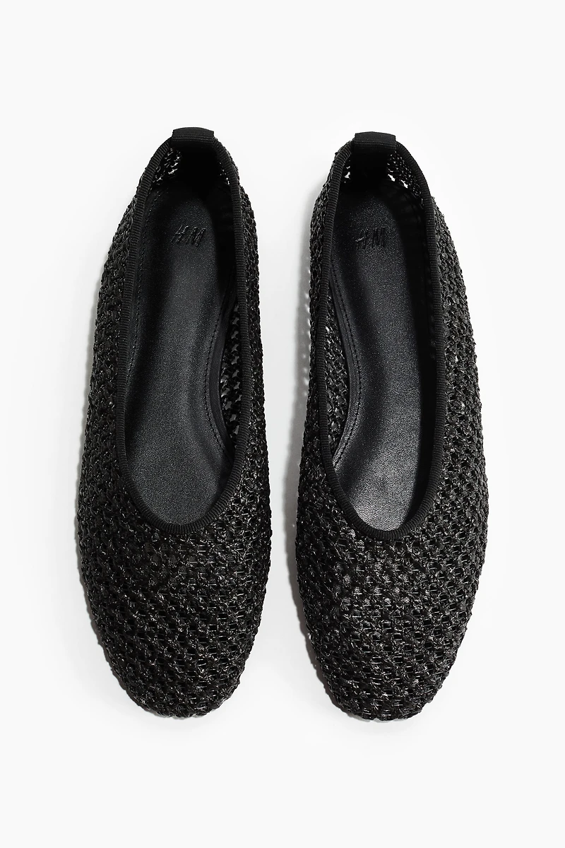 Flats in braided plastic straw with rounded toes.