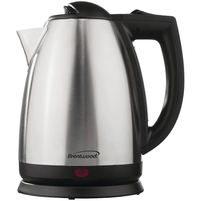 The Brentwood KT-1800 2 L. Stainless Steel Cordless Electric Kettle boils water faster than a microwave and safer than a stove top kettle. Water boils within minutes with a single push of a button. Cordless kettle lifts off the 360° swivel base for easy filling and pouring. Conveniently make hot tea, French press or pour over coffee, instant oatmeal and more! The stainless steel interior, concealed heating element and BPA-free parts keep water free of impurities.Details:Silver2 LStainless steelCordlessElectric360° swivel baseBPA-free partsThis unit automatically shuts off once water reaches a boil