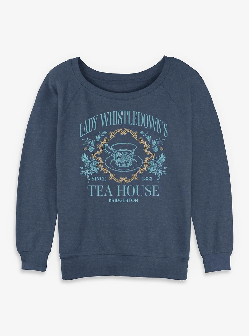 Product ID: 36315845 Bridgerton Lady Whistledown's Tea House Womens Slouchy Sweatshirt BoxLunch Exclusive