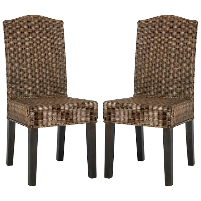 Brown Woven Rattan DIning Chairs, Set of 2
