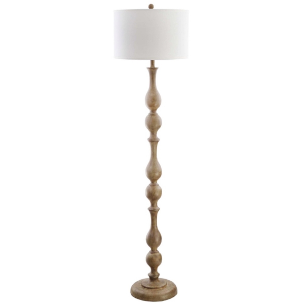 This Brown Carved Spindle Floor Lamp will bring both light and style into your home. Its classic design will fit perfectly in any corner of your home! Lamp measures 64H in. Crafted of resin Brown finish Carved spindle base Softback drum shade in white fabric Shade measures 10H x 16 in. in diameter Socket accommodates a 100-watt, type-A bulb Features a 72 in. plug-in cord Care: Dust with a soft, dry cloth. Do not exceed specified wattage. This item is available at Kirklands.com only, not available in stores. Please note: this item cannot be shipped to APO/FPO addresses. WARNING: This product can expose you to chemicals including Di(2-ethylhexyl)phthalate (DEHP), which is known to the state of California to cause cancer and birth defects or other reproductive harm. For more information go to www.P65Warnings.ca.gov .