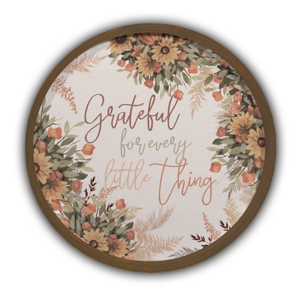 Our Brown Grateful for Every Little Thing Wall Plaque is a great reminder of what Thanksgiving is all about! This plaque is perfect for decorating for Thanksgiving or the whole fall season! Plaque measures 1.38W x 20 in. in diameter Crafted of wood Distressed brown wood frame finish Beige background finish Features the phrase "Grateful for every little thing" Accented with fall florals and leaves Round shape Hues of brown, yellow, orange, and green Designed and printed in the USA Comes ready to hang with two (2) high-quality D-rings Care: Wipe clean with dry cloth. This item is available at Kirklands.com only, not available in stores. Please note: this item cannot be shipped to APO/FPO addresses.