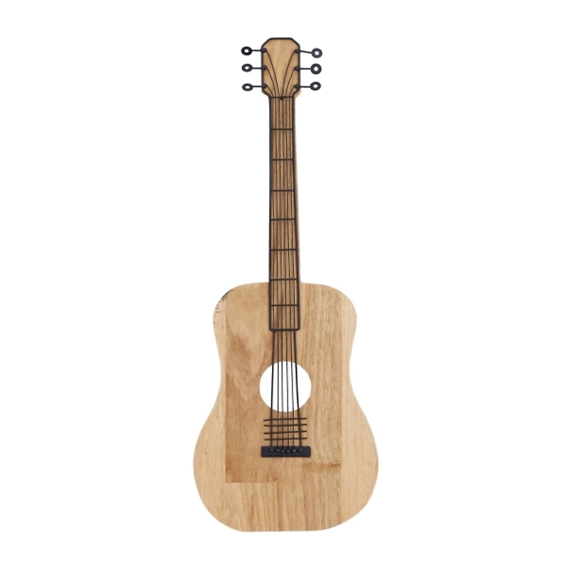 The Brown Wood Acoustic Guitar Wall Plaque will look perfect in any modern, music-loving home. Hang this dimensional wall sculpture above a record table for a strum of style! Plaque measures 11.75L x 1.75W x 31.4H in. Crafted of wood composite and metal Brown wood finish Black metal finish Features an acoustic guitar design Hues of brown and black Weight: 2.3 lbs. Hangs from back-mounted hardware Care: Dust with a soft, dry cloth. This item is available at Kirklands.com only, not available in stores. Please note: this item cannot be shipped to APO/FPO addresses. WARNING: Cancer and Reproductive Harm - For more information go to www.P65Warnings.ca.gov .