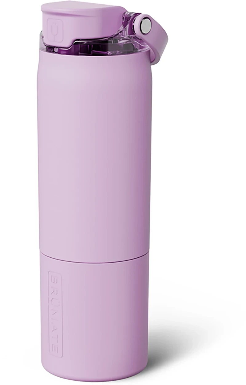 Stay hydrated on the go with the BruMate Rise 25 oz. Water Bottle with Flip Lid and Top Handle. Its Bevlock lid ensures a 100% leakproof sipping experience. The MagFlip technology keeps your lid open while you sip for hot, cold, and carbonated beverages with ice, and its ColdKey straw minimizes plastic exposure in your drink, while delivering a cool, crisp sipping experience. The handle provides a durable, easy-carry and storage.
