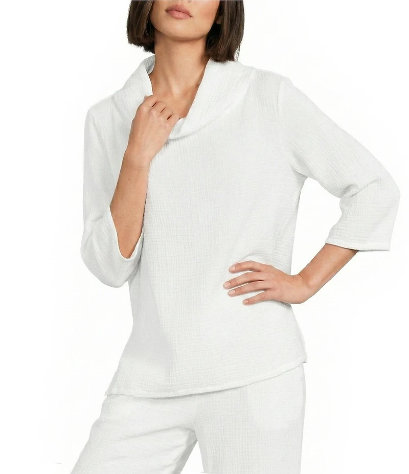 From Bryn Walker, this shirt features: Cotton gauze fabrication Cowl neckline Elbow sleeves Straight hem Pullover construction Approx. 25" length Cotton Machine wash Imported.