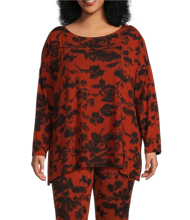 Bryn Walker Plus Size Bex Floral Print Boat Neck Long Sleeve Top
