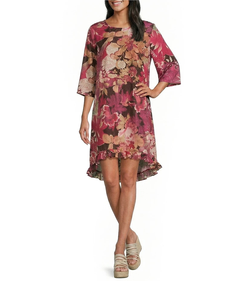 Bryn Walker Zaida Rosa Print Silk Round Neck 3/4 Sleeve High-Low DressBryn Walker Zaida Rosa Print Silk Round Neck 3/4 Sleeve High-Low DressBryn Walker Zaida Rosa Print Silk Round Neck 3/4 Sleeve High-Low Dress