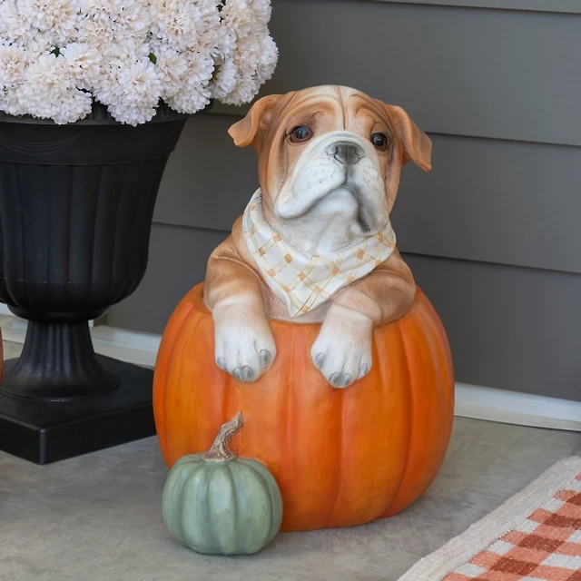 Bulldog in Pumpkin Outdoor Statue
