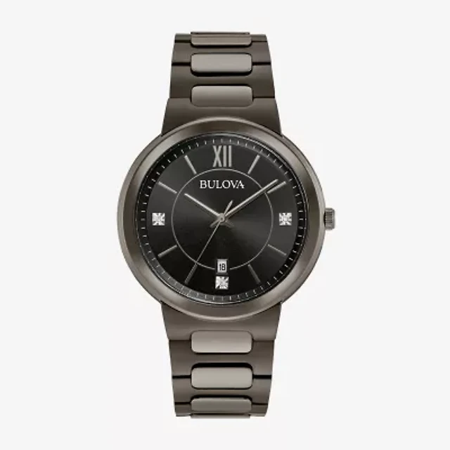 Bulova Diamond Mens Diamond Accent Gray Stainless Steel Bracelet Watch 98d158