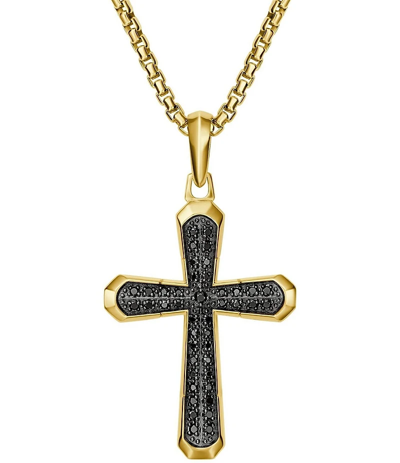 Bulova Men's 14K Gold Black Spinel Cross Short Pendant Necklace in Chattanooga, TN