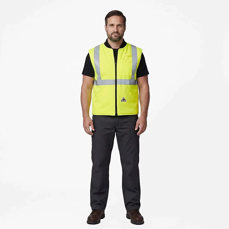 Confidently take on the work day whenever you wear the Bulwark Men's Flame Resistant Hi-Visibility Insulated Vest. The durable-water repellent (DWR) finish keeps moisture at bay for a dry and comfortable feel that withstands your daily demands, while the reflective details and Flame Resistant (Flame Resistant ) treatment provide safety.