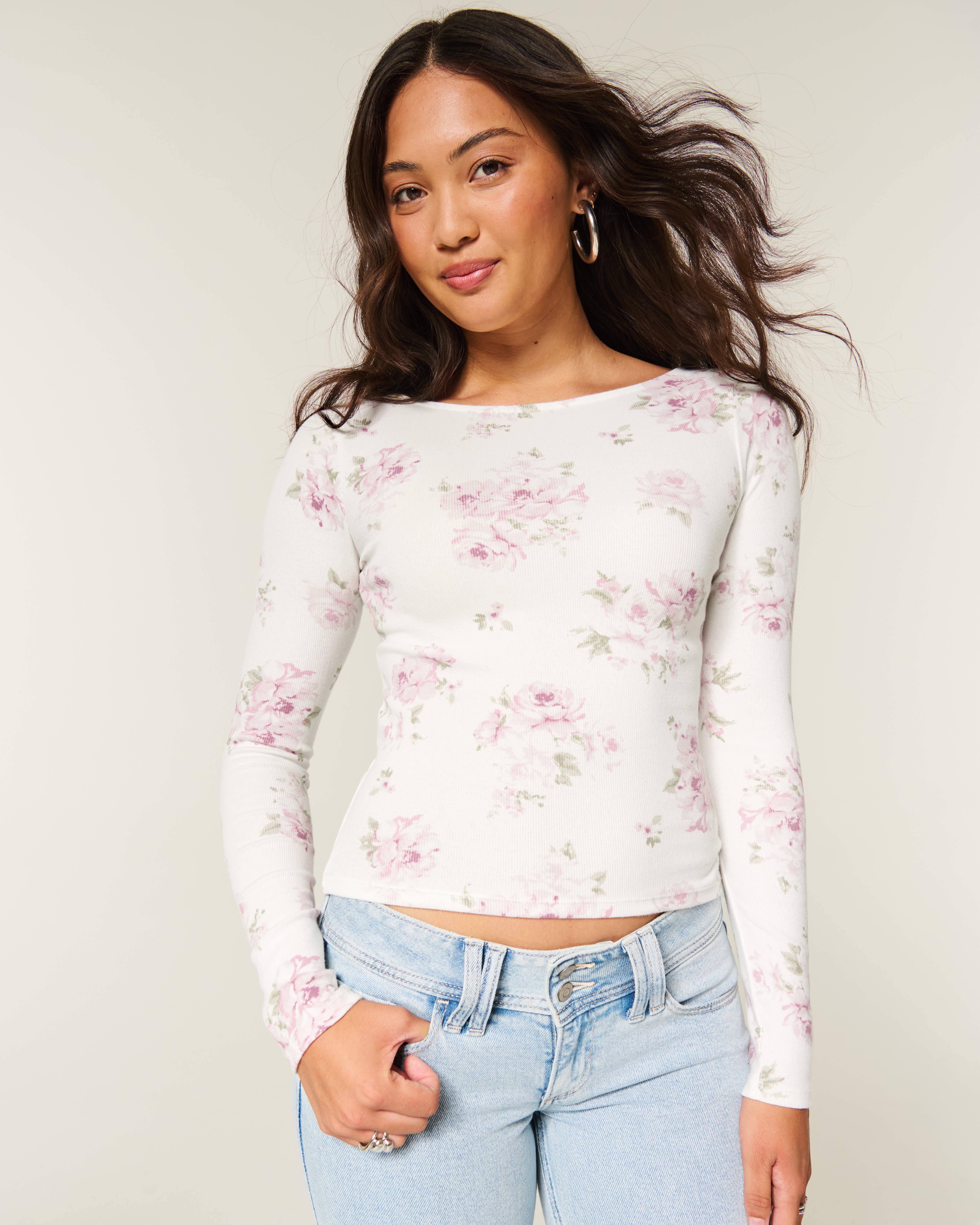 Long-Sleeve Slash-Neck Top