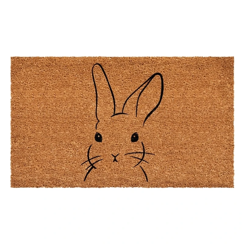 Give your entryway a minimalist flair for the spring holiday! The Bunny Silhouette Coir Doormat is the perfect Easter décor to match your contemporary style. Mat measures 36L x 24W x 0.6H in. Crafted of coir with a vinyl backing Features a bunny subject Hues of tan and black Safe for outdoor use Care: Vacuum or sweep clean This item is available at Kirklands.com only, not available in stores. Please note: this item cannot be shipped to APO/FPO addresses.