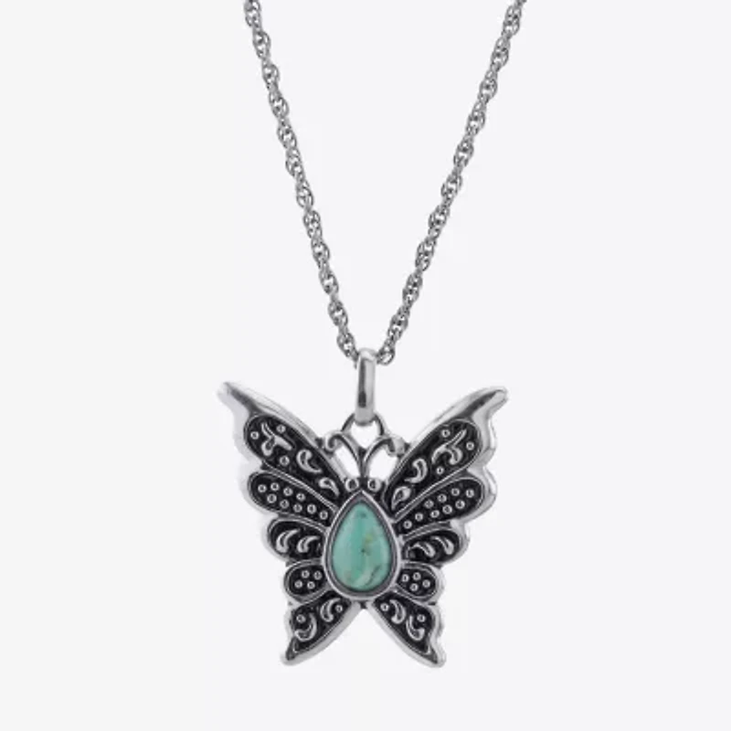 Butterfly Womens Enhanced Blue Turquoise Sterling Silver Butterfly 18 Inch Pendant Necklace