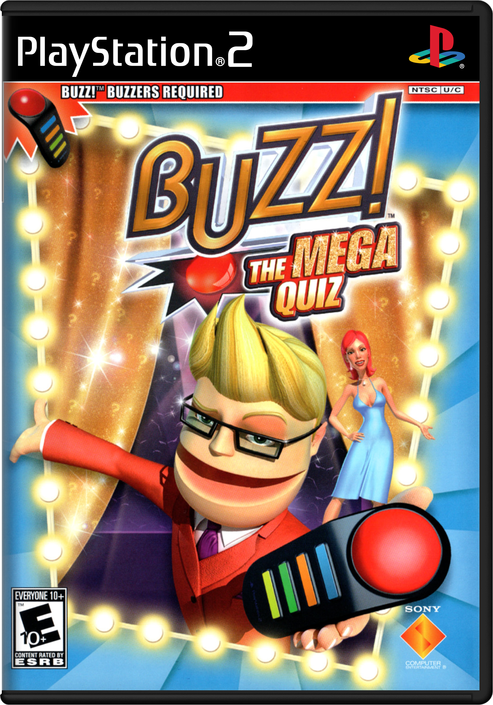 Developed by Relentless Software, Buzz! The Mega Quiz is an all-new interactive quiz game. Buzz! The Mega Quiz is an easy to play, TV-style game show that delivers a socially competitive experience tailor-made for the PlayStation generation with over 5000 questions across a variety of topics and genres, including fashion, music, sports, film and more. Buzz provides an accessible gaming experience that is played competitively by real people using one of four pick up and play Buzz! Buzzers. The Buzzers are fun to hold, easy to use and come packed in with the game.