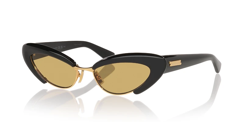 Elevate your style with the Bottega Veneta BV1387S sunglasses. These bold cat-eye frames, crafted from smooth acetate, offer definition with their full-rim design. The striking black front complements the vibrant yellow lenses, creating a timeless yet distinctive look. Perfect for adding a touch of sophistication to any outfit, these Bottega Veneta sunglasses are a must-have accessory.