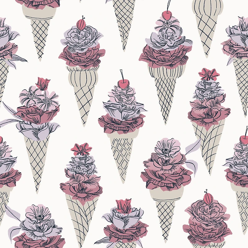By Dylan M Pink Floral Ice Cream Peel & Stick Wallpaper