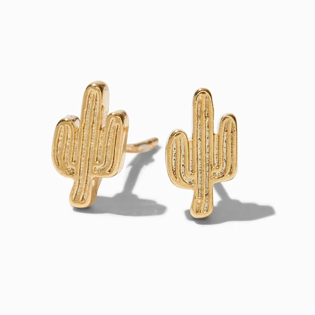 C LUXE by Claire's 18kt Gold Plated Cactus Stud Earrings
