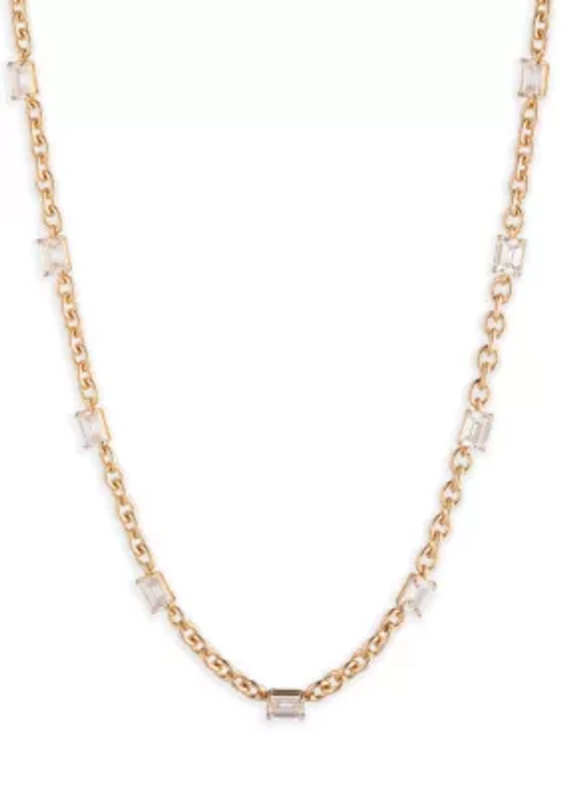 Featuring a sleek cable-inspired chain accented with sparkling cubic zirconia, this Lauren Ralph Lauren collar-style necklace delivers modern elegance with just the right amount of shine. Designed to sit beautifully at the collarbone, it’s a standout piece worn solo or layered for a refined, fashion-forward look. Lobster closure Polished finish Imported Product Specifications 16" L + 3" extender Material & Care Gold-tone metal Clean with a soft cloth