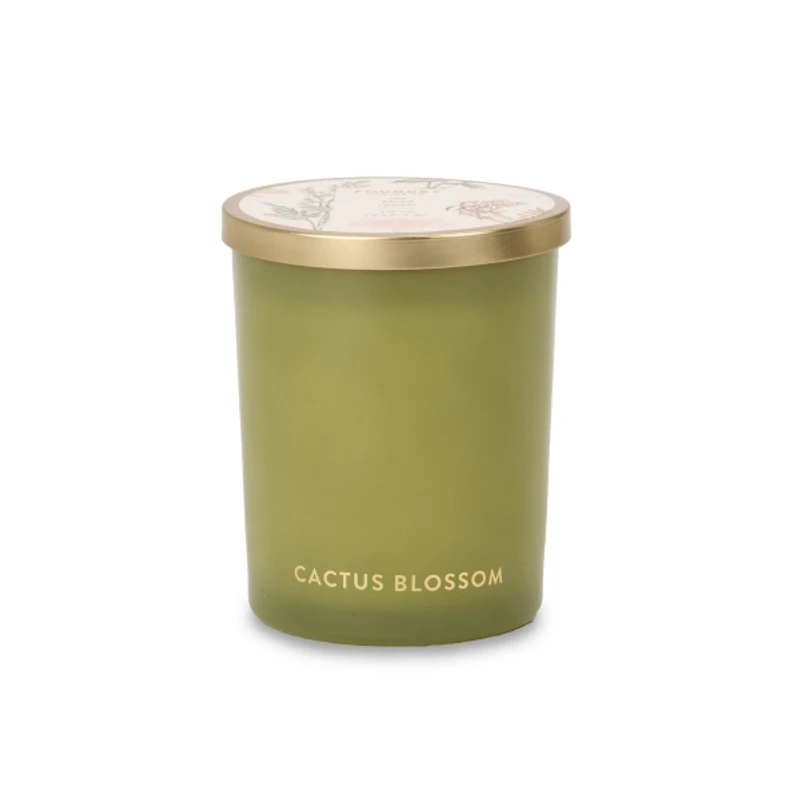 Uplift your home with the fresh, green scent of this Cactus Blossom 2-Wick Jar Candle. Notes of juicy orange and sweet mango add a fruity touch to its earthy fragrance. Candle measures 4.9H x 4.2 in. in diameter 16 oz. candle Green tinted glass jar with gold lid Soy blend wax Top notes: orange, apple, peach, melon Middle notes: mango smoothie, jasmine, papaya nectar Base notes: coconut, musk, sugar Double wick design Burn time: 60 hours Care: Trim wick to 1/4 inch prior to lighting. Do not allow wick trimmings to accumulate in wax pool. Place on a temperature safe surface. Burn for 2-3 hours at a time. Never leave burning candles unattended. Burn within sight. Keep away from anything that can catch fire. Keep out of reach of children and pets. Discontinue use when 1/4 inch of wax remains. Contact your local Kirkland's store for availability. Quantities and selection may vary by location.