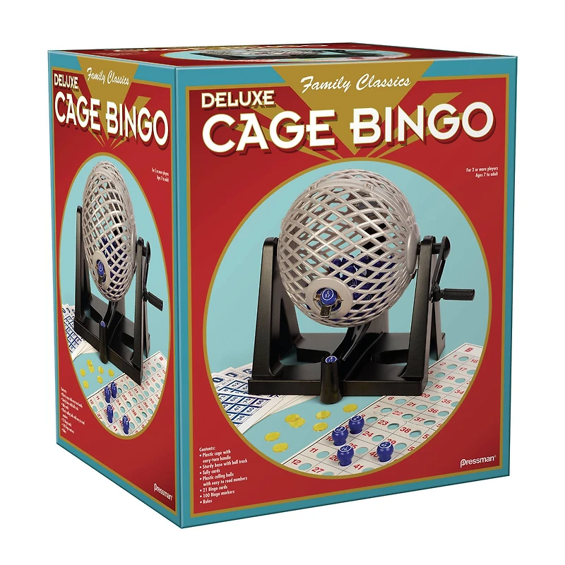 Dare to try and get five in a row! This classic game is fun for the whole family. This set includes a plastic cage, balls, tally card, cards markers, instructions and more. Details: Plastic cage, base with ball track, tally card, plastic calling balls, 21 bingo cards, bingo markers, and rulesFor 2 or more playersFor ages 7 and up