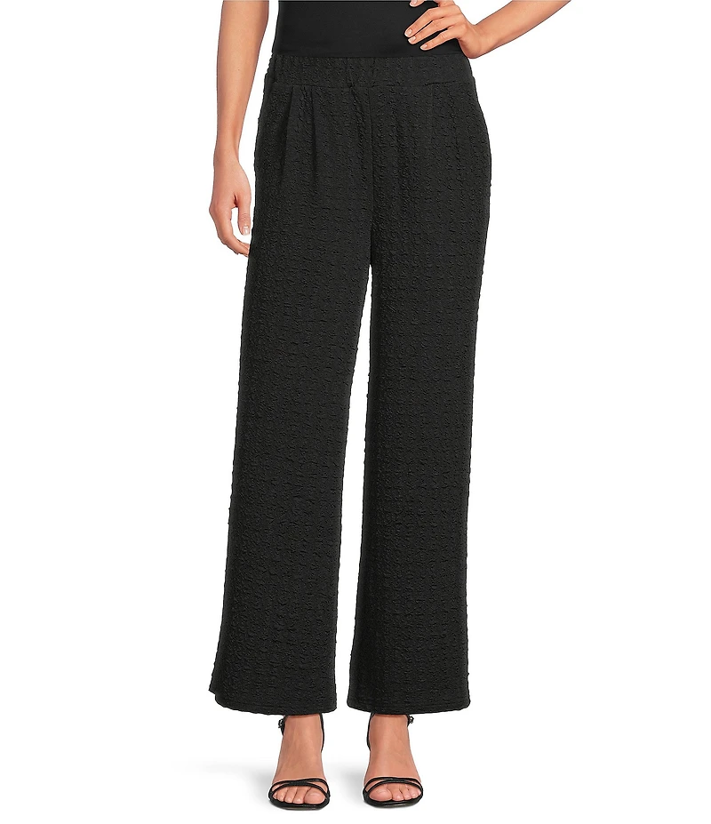 Calessa Textured Crinkle Knit Wide Leg Pull-On Pants