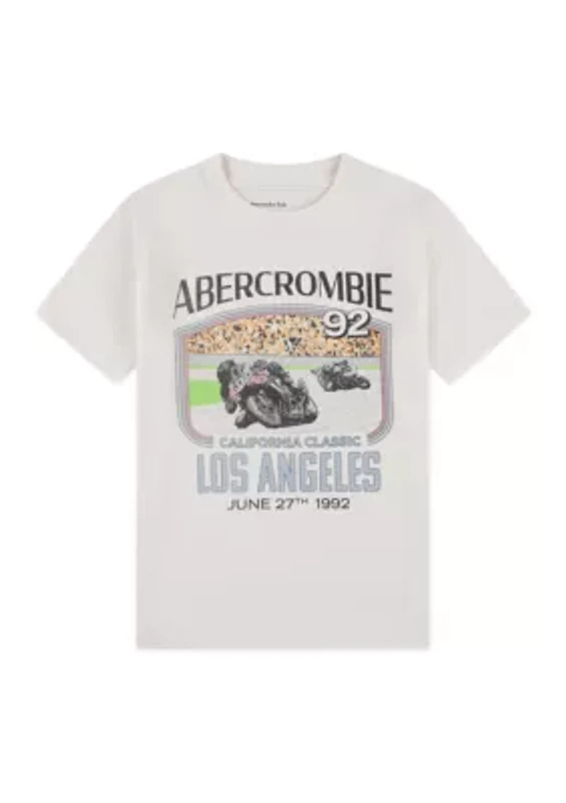 This soft cotton-blend tee from abercrombie kids features a retro “June 27th, 1992” California racing graphic for a cool, throwback look. With its easy fit and everyday comfort, it’s perfect for school, play and sunny-day adventures. Pullover Crew neck Short sleeves Imported Material & Care Cotton, polyester Machine washable