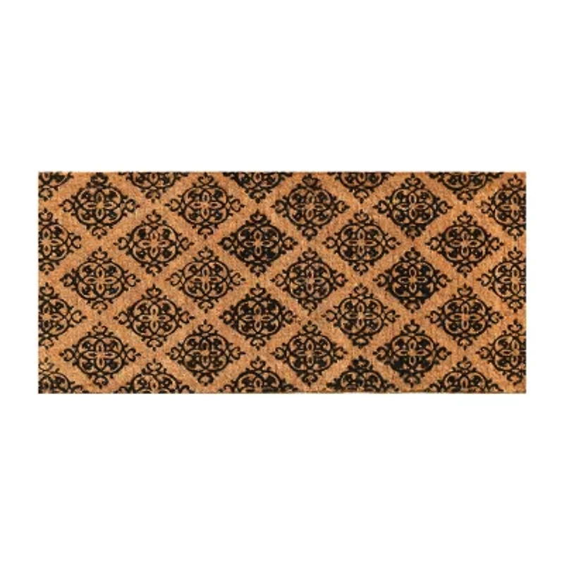 Made of natural coir, a dense fiber that is naturally mold and mildew resistant. Coir is a renewable resource that is durable and weather tolerant. Expertly made by hand of 100% coir, this durable, heavy-duty doormat is earth friendly, naturally abrasive to scrape shoes clean, retains its shape and absorbs moisture. For best results keep in a sheltered area such as a covered porch, keeping extreme moisture and sunlight to a minimum. Average height is 1" to 2" thick. Vacuum, sweep or lightly hose clean.