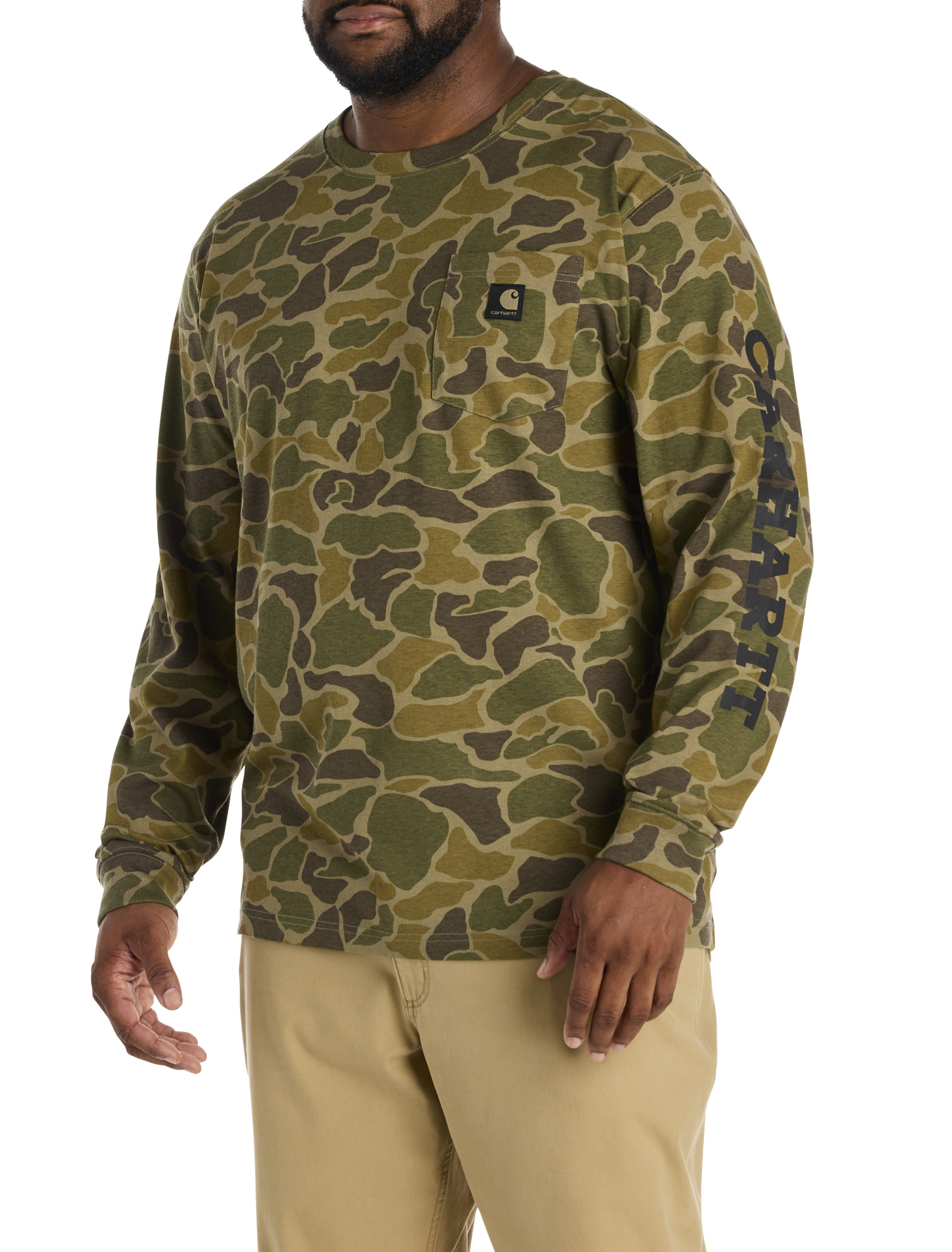 Offering rugged appeal and on-trend style to hunters and non-hunters alike, this camouflage long-sleeve T-shirt from Carhartt will keep you comfortable on its own or layered. Crafted in 100% cotton, the durable fabric is designed to keep you warm without weighing you down. The relaxed fit style allows for the freedom to move without restriction. Side-seam construction minimizes twisting for long wear and a tagless neckline ensures a smoother feel for even more comfort.