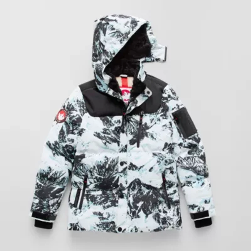 Printed with a unique camo-style print, this Canada Weather Gear big kid boys hooded parka is water-resistant to keep you protected through winter elements. It features a soft faux fur lining with chest and side zip pockets, and a zip closure with a snap-button flap for extra warmth.