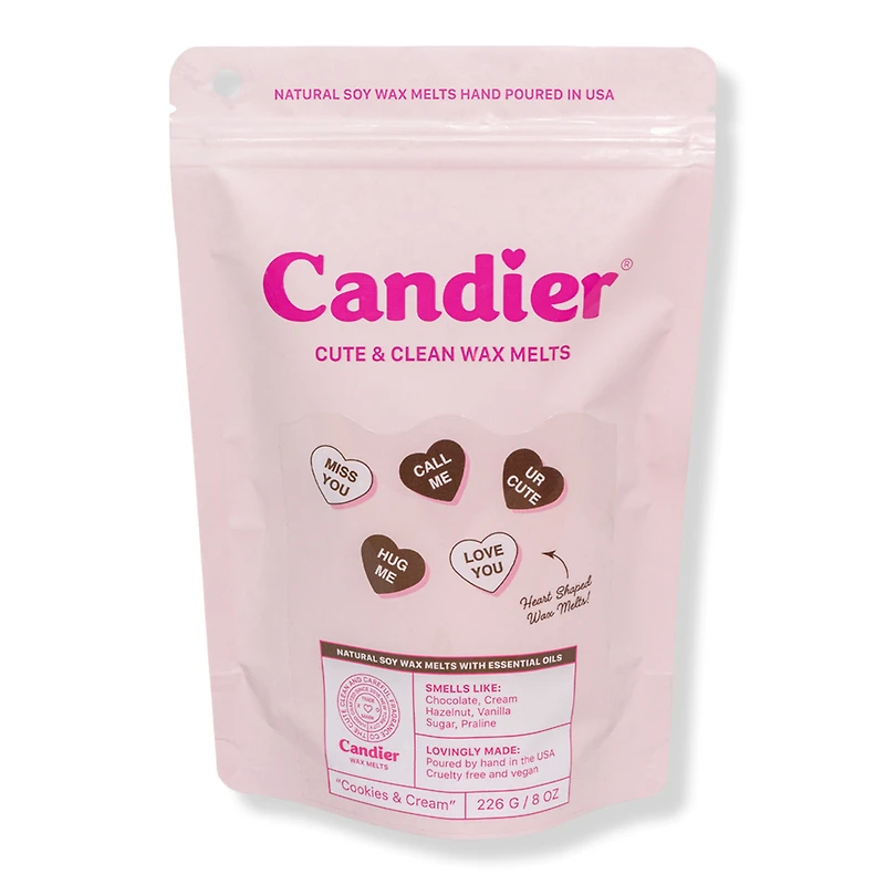 COOKIES AND CREAM MELTS. Features: Dessert wax melts for a flameless scent experience. Made in the USA with premium soy wax. Perfect for gifting, self-care nights, or cookie-scented vibes. Cute wax melts in heart shapes with nostalgic snack vibes. Formulated Without: Phthalates. Parabens. Key Notes: Top: Chocolate, Sugar. Mid: Vanilla Cream, Hazelnut. Base: Sweet Praline, Warm Cookie.