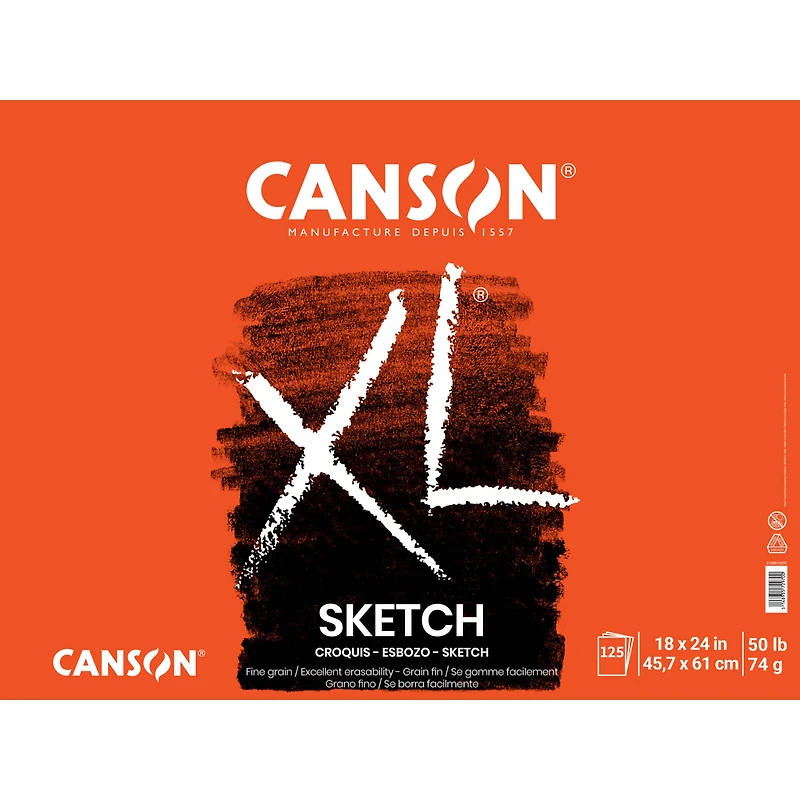 This Canon® XL® value pack sketchbook is a must have for students and beginner artists. You can use it to make drawings and sketches in pencil, charcoal and pen. The acid-free sheets feature a medium tooth, and they erase cleanly for neat results.Details:Natural white18" x 24" (45.7cm x 61cm)50lb/74g125 sheetsMedium toothAcid-free