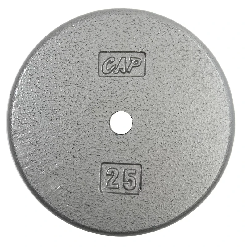 Take your workout up a notch with the CAP Barbell 25 lb. Standard Plate. This strong and durable weight is made from high-grade iron and cast using steel molds to provide optimal accuracy and tolerance. Cutouts on the 1" plate offer a firm, reliable grip when you need to move the weight.