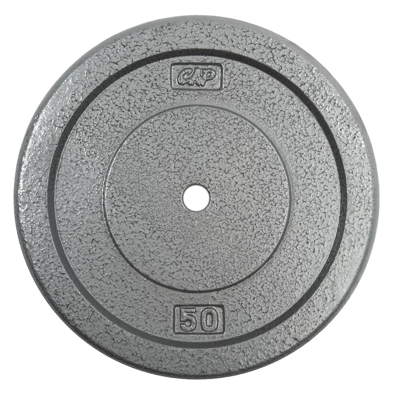 Take your workout up a notch with the CAP Barbell 50 lb. Standard Plate. This strong and durable weight is made from high-grade iron and cast using steel molds to provide optimal accuracy and tolerance. Cutouts on the 1" plate offer a firm, reliable grip when you need to move the weight.