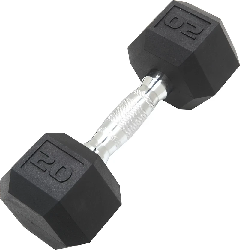 Stay comfortable during your workout by lifting the CAP Barbell 20 lb. Coated Hex Dumbbell. The rubber heads keep the dumbbell from damaging floors, and the ergonomic handle reduces fatigue in your hand and improves comfort. The hex design prevents the dumbbell from rolling.