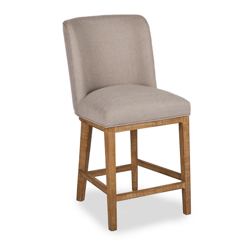 Our Capri Gray Upholstered Counter Stool will update your dining space with comfort and classic style. From farmhouse to traditional, this dining furniture suits any kitchen aesthetic while elevating your dining experience. Overall dimensions Width: 19.4 in. Depth: 22.1 in. Height: 38.4 in. Seat height measures 25 in. Crafted with a wood frame Brown wood frame finish Upholstered in a gray fabric Padded seat and curved backrest Weight: 18.1 lbs. Weight capacity: 225 lbs. No assembly required Not intended for commercial use Care: Spot clean only. Contact your local Kirkland's store for availability. Quantities and selection may vary by location. WARNING: Cancer and Reproductive Harm - For more information go to www.P65Warnings.ca.gov .