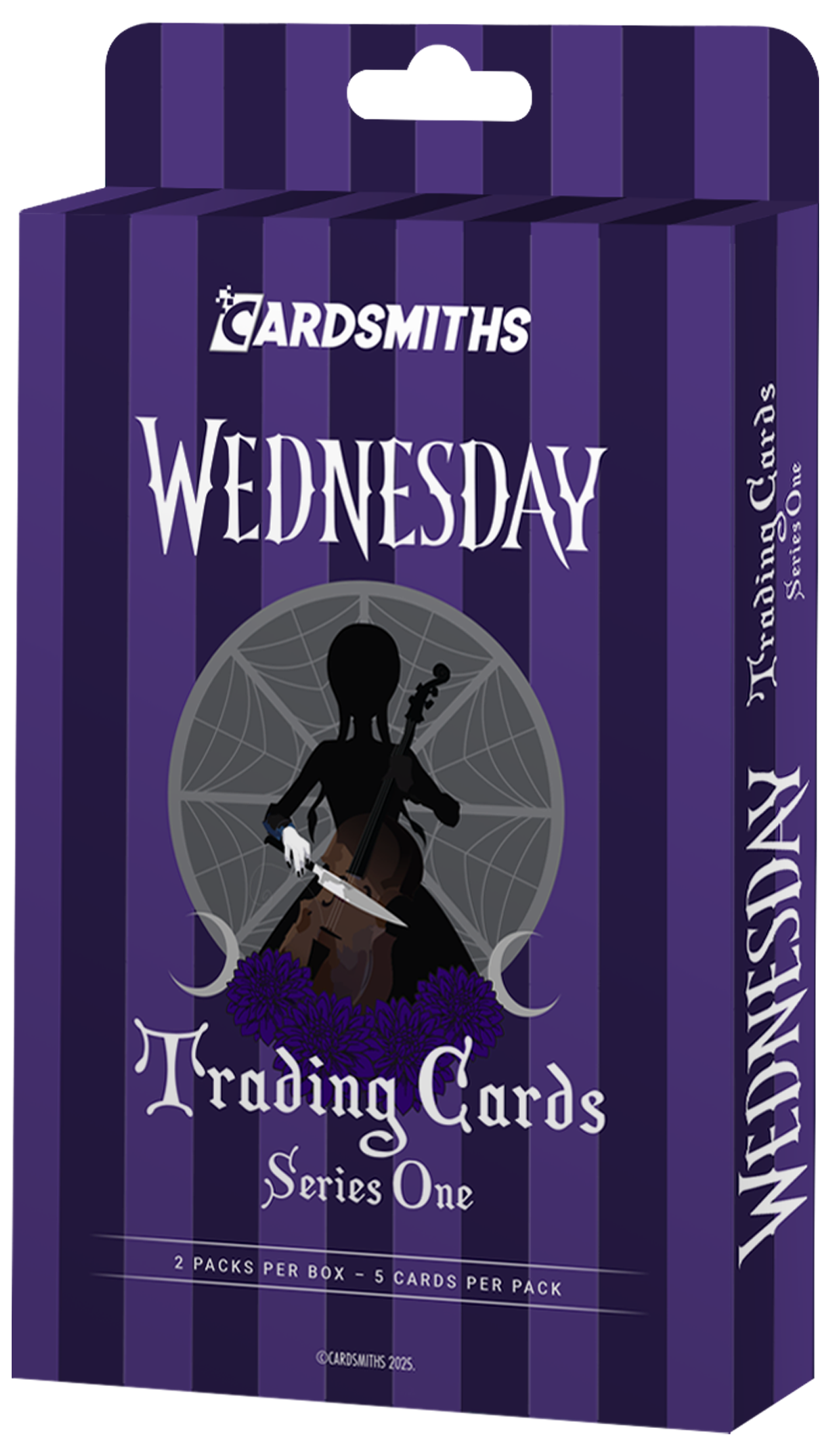 Official Cardsmiths Collectible: Experience the mysteries behind the black veil with officially licensed Wednesday Series 1 Trading Cards, summoned by the creators at Cardsmiths. A perfect look into the strange world of Wednesday Addams.