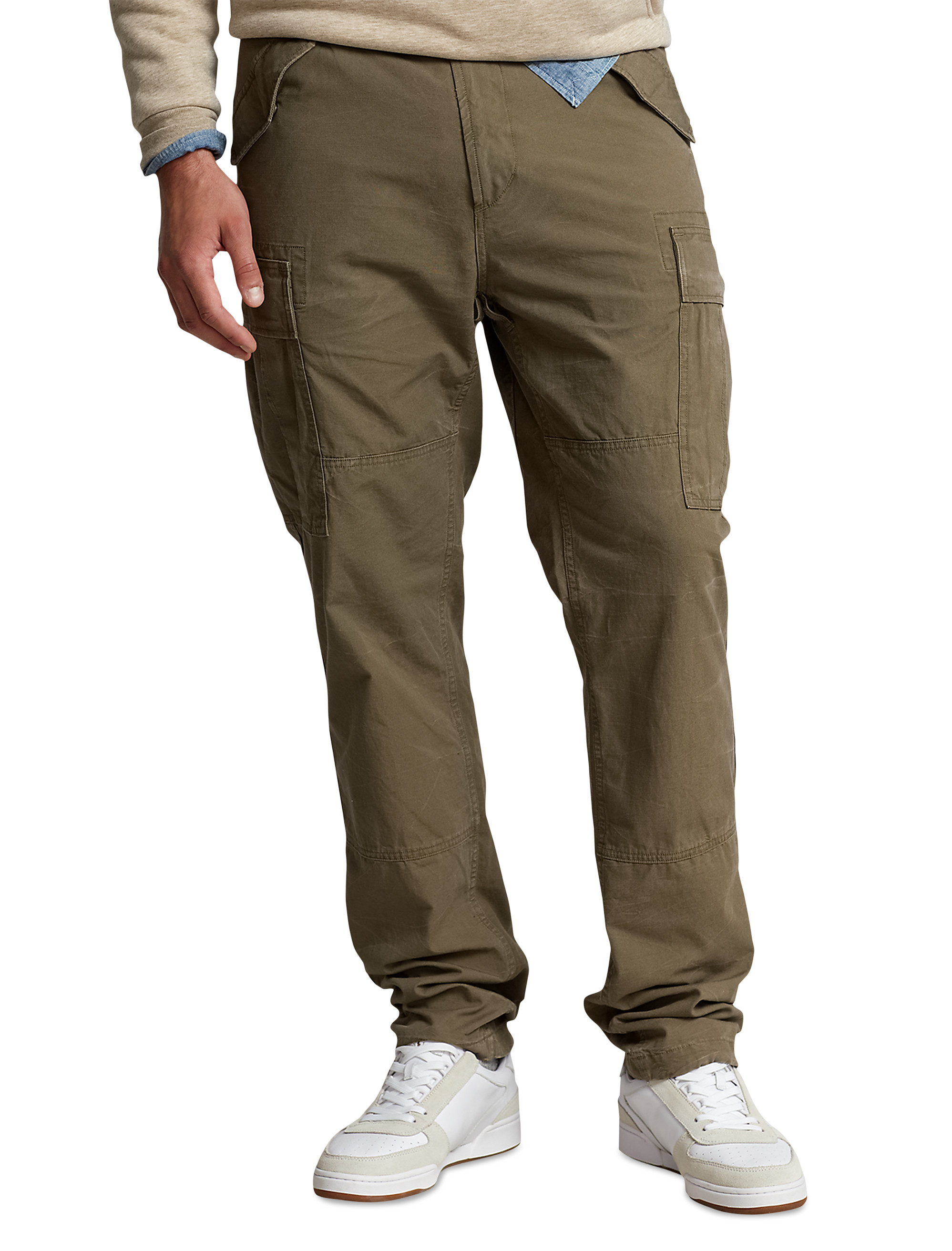 Based on classic military-issued style-one of Ralph Lauren's signature inspirations-these cotton canvas cargo pants mimic an authentic vintage pair but with a modern fit that's slim through the leg. Its classic fit is a relaxed style.
