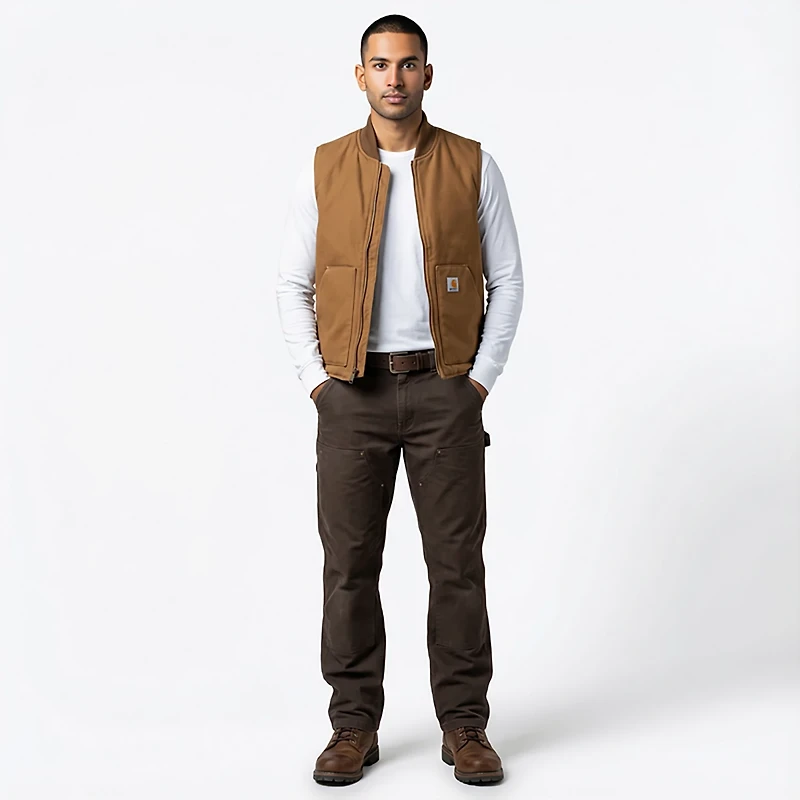 The Carhartt Men's Relaxed Fit Washed Duck Sherpa-Lined Vest is designed to keep you warm on cool days. Made of washed cotton duck for comfort, this vest is lined with sherpa fleece to deliver warmth. The vest also comes with a full zip closure for easy on and off.