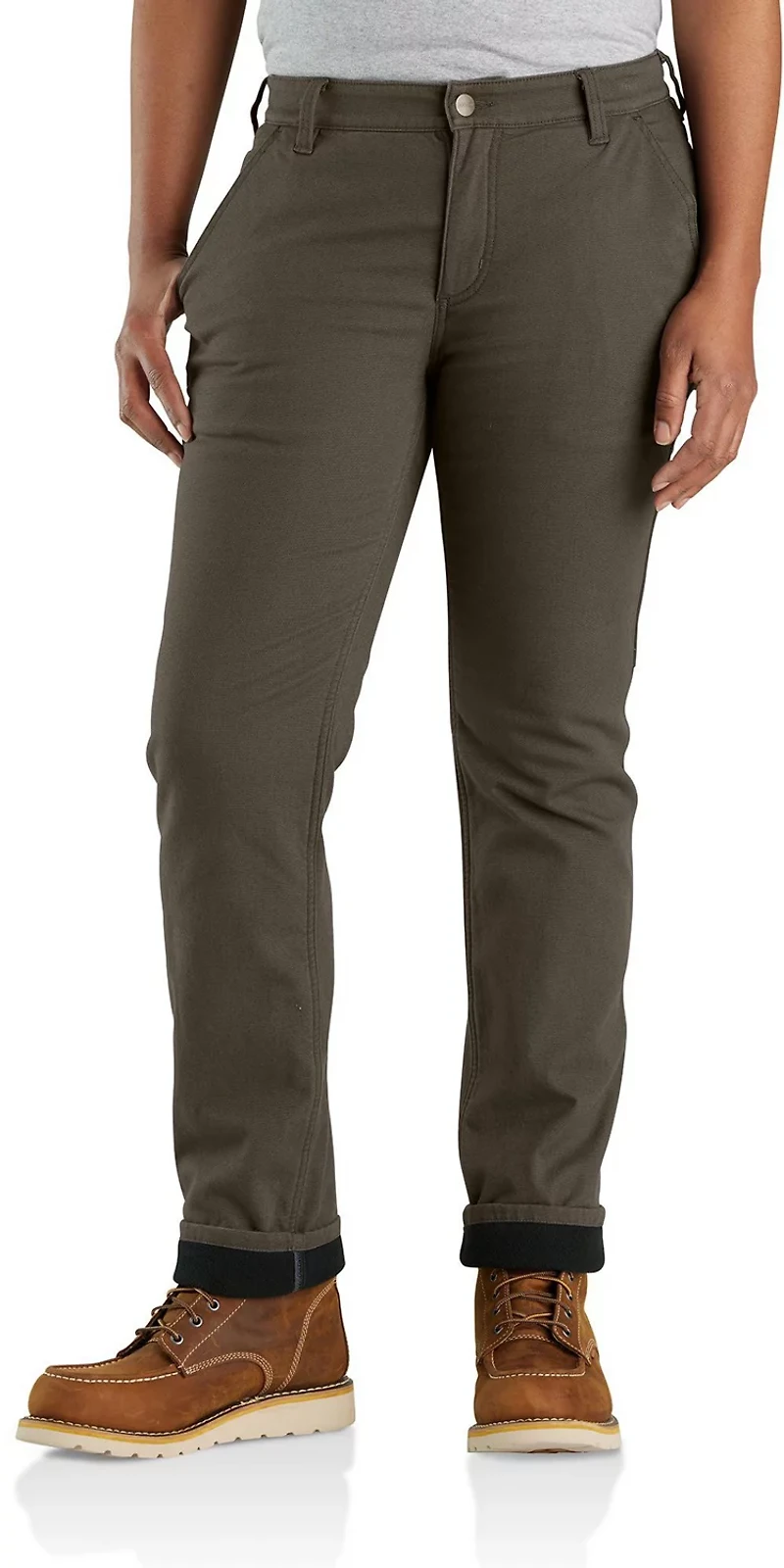 Move freely on the job with Carhartt Women's Rugged Flex Relaxed Fit Canvas Fleece Lined Work Pants. The Rugged Flex® stretch canvas provides a mobile, comfortable fit perfect for tough work days. Soft fleece adds warmth for chilly weather.