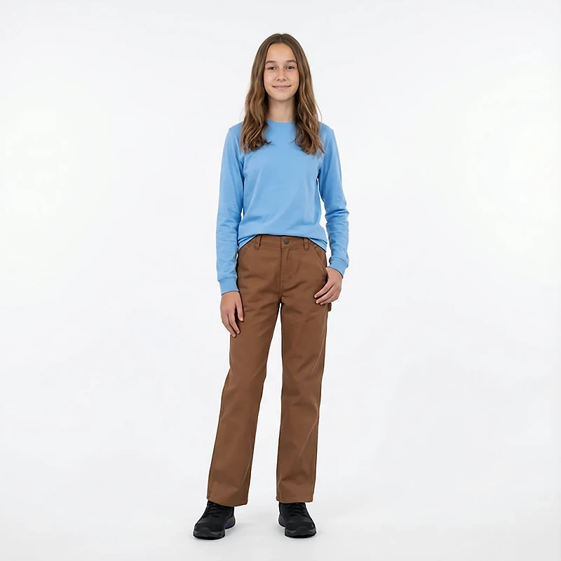 Get young workers ready for the day with Carhartt Youth Rugged Flex Canvas Work Pants. The cotton blend canvas construction features Rugged Flex® technology for ease of movement. Triple stitched seams enhance durability while multiple pockets keep their tools convenient.
