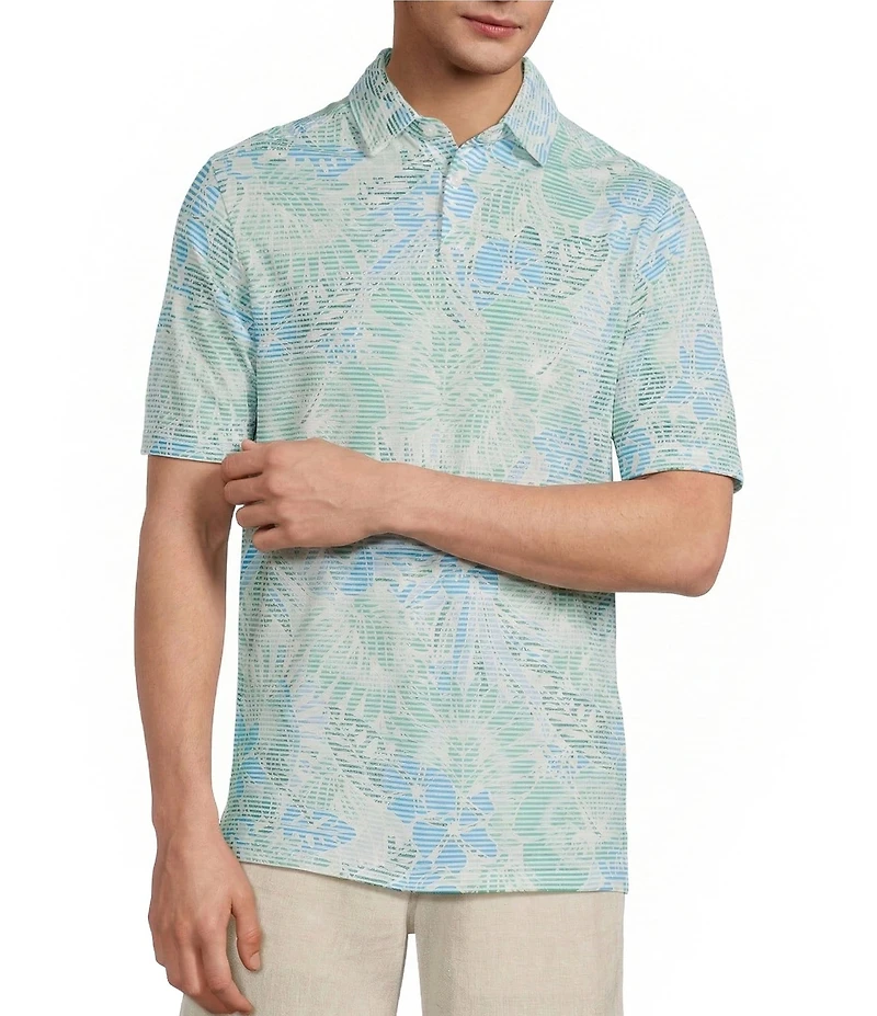 Caribbean Seersucker Leaf Print Short Sleeve Polo Shirt in Chattanooga, TN
